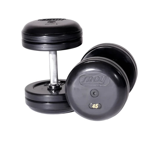 View full detailsTroy Rubber Encased Pro-Style Dumbbells with Straight Handles and Rubber Endcaps - RUFD-R